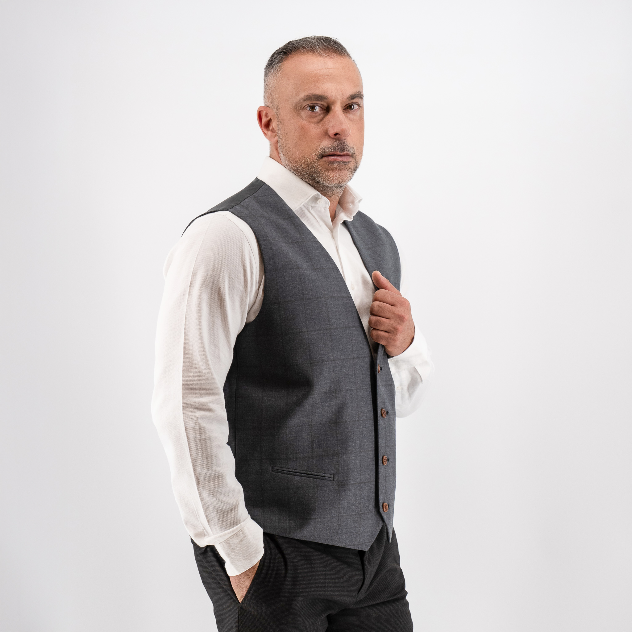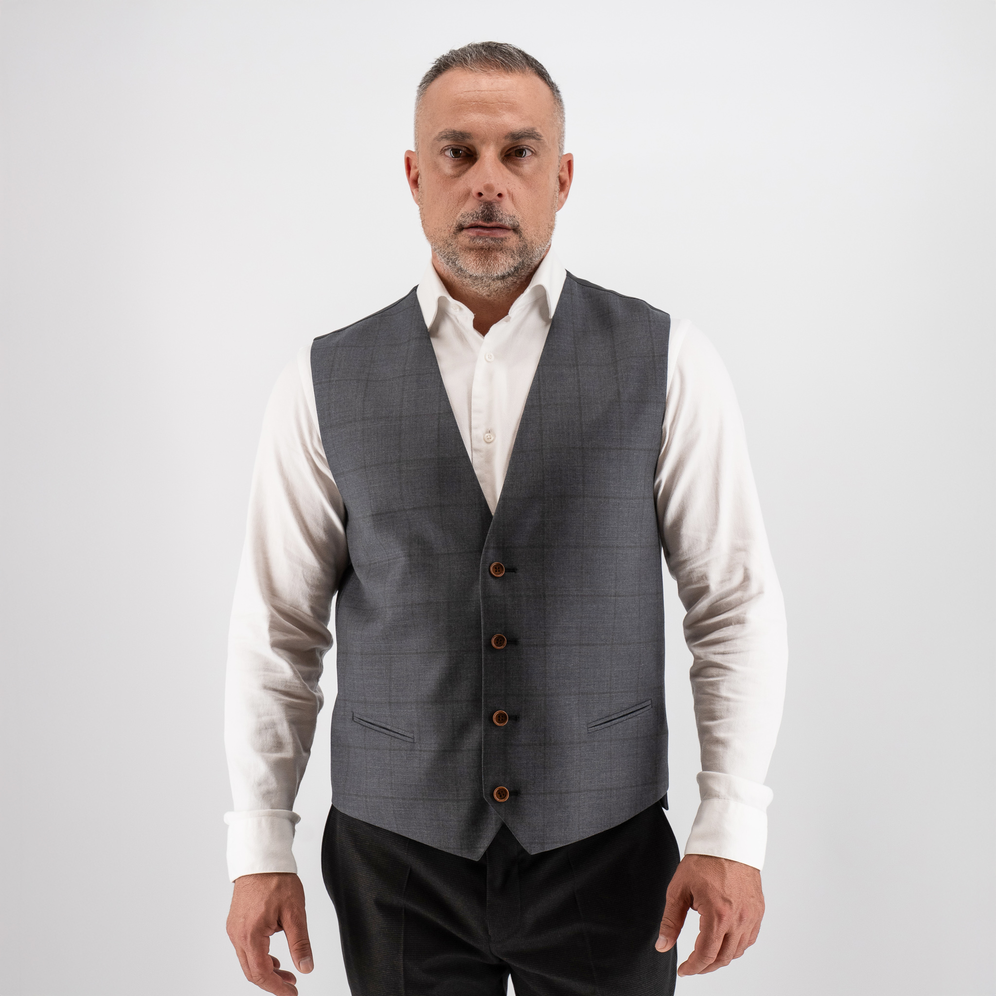 - Γιλέκο κοστουμιού Guy Laroche γκρι καρώ fit line