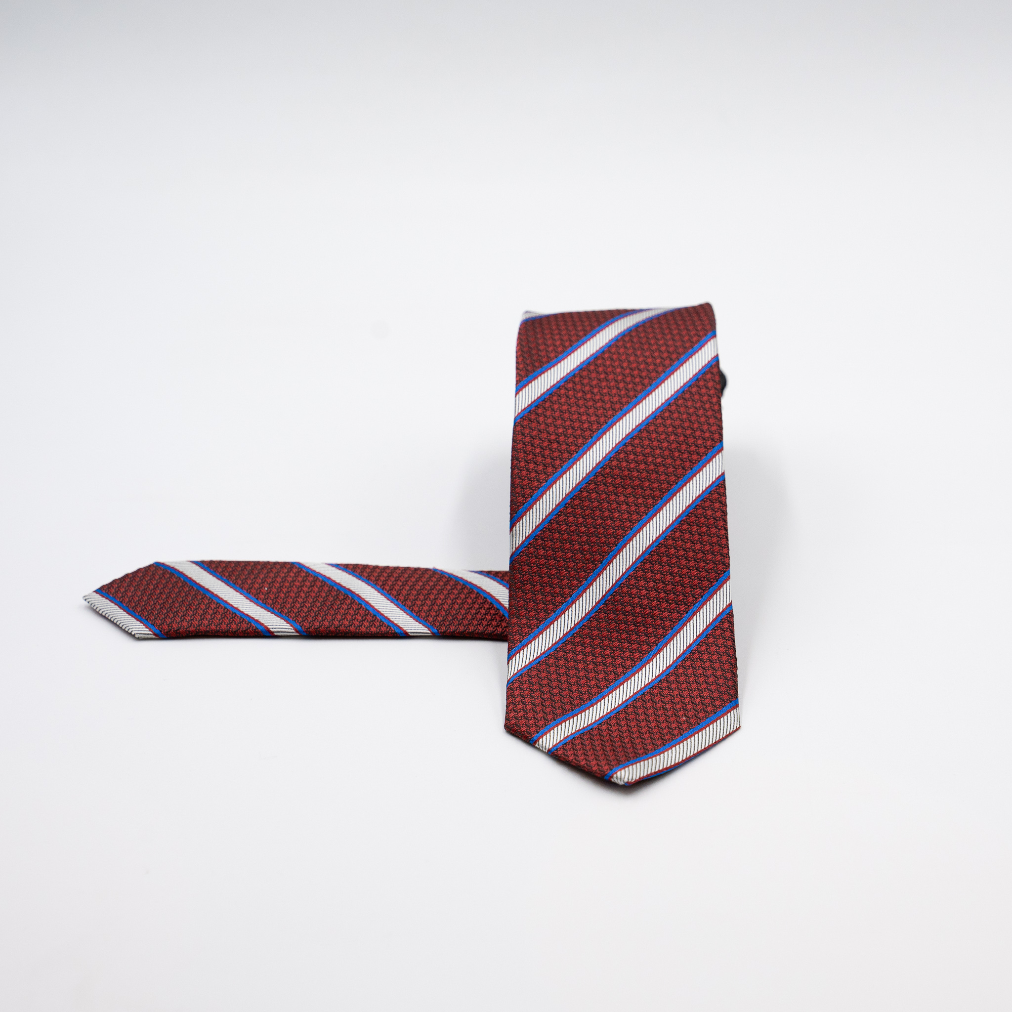 - Γραβάτα μεταξωτή Guy Laroche μπορντώ με λευκές και μπλε ρουά ρίγες