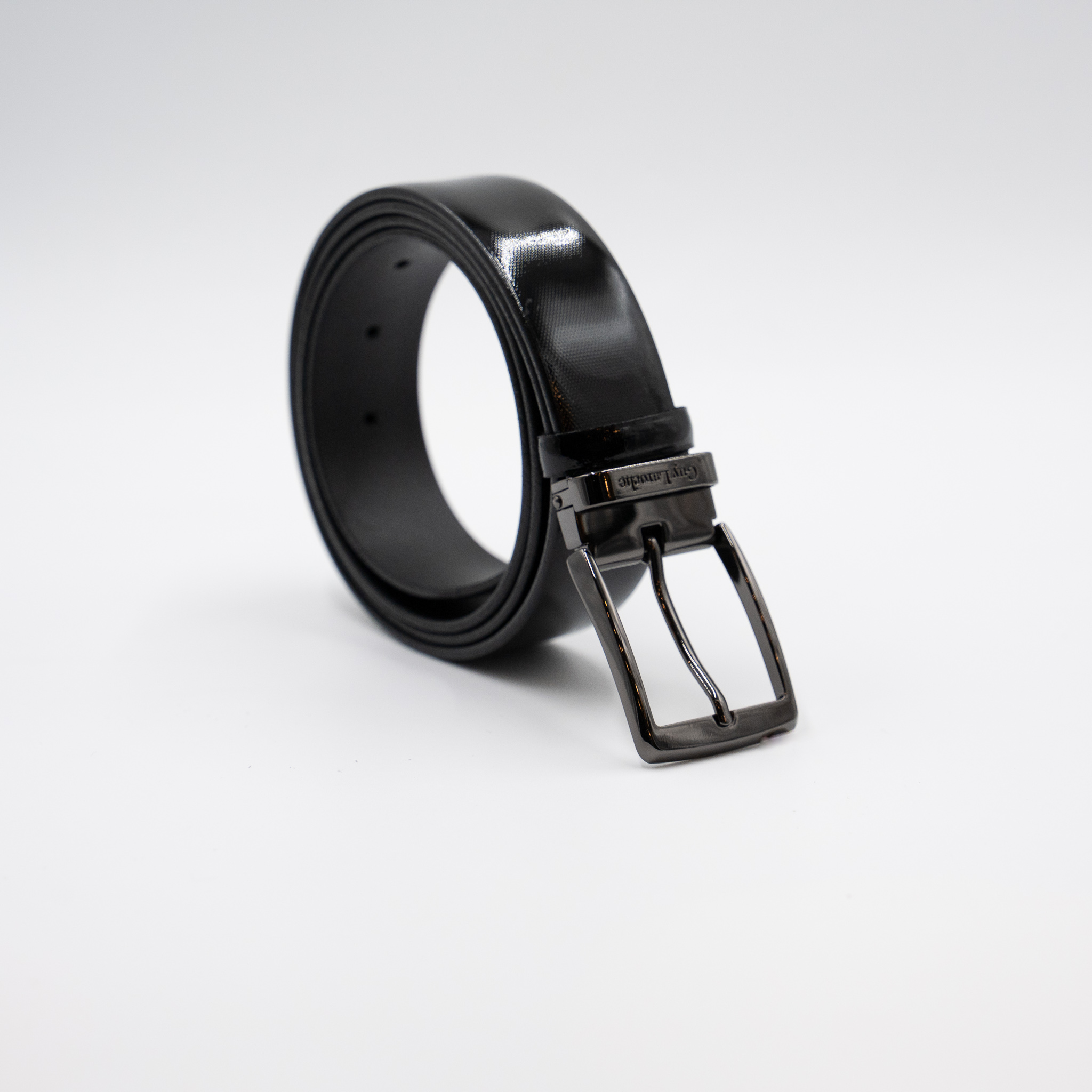 - Ζώνη λουστρίνι με σχέδιο Guy Laroche μαύρη δερμάτινη