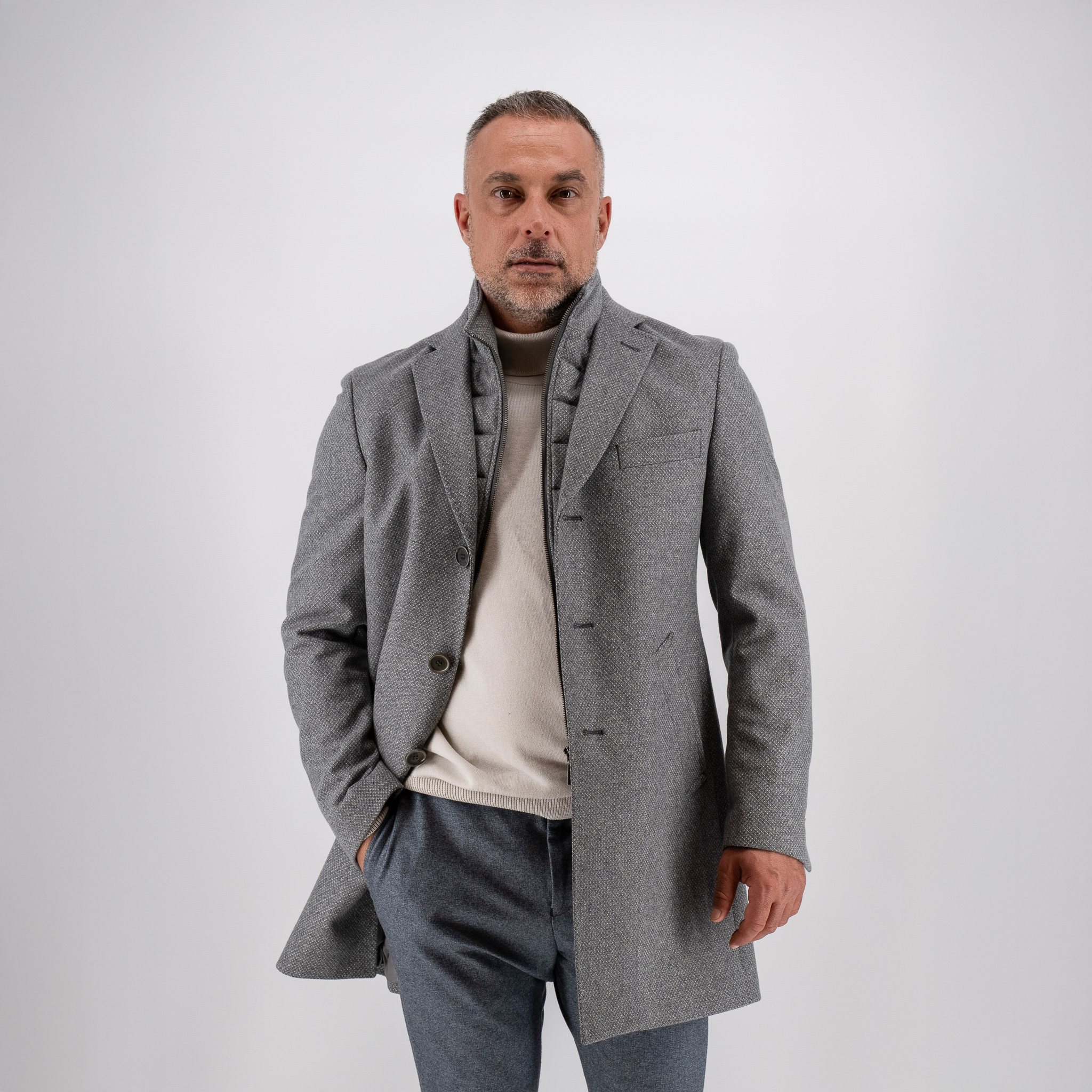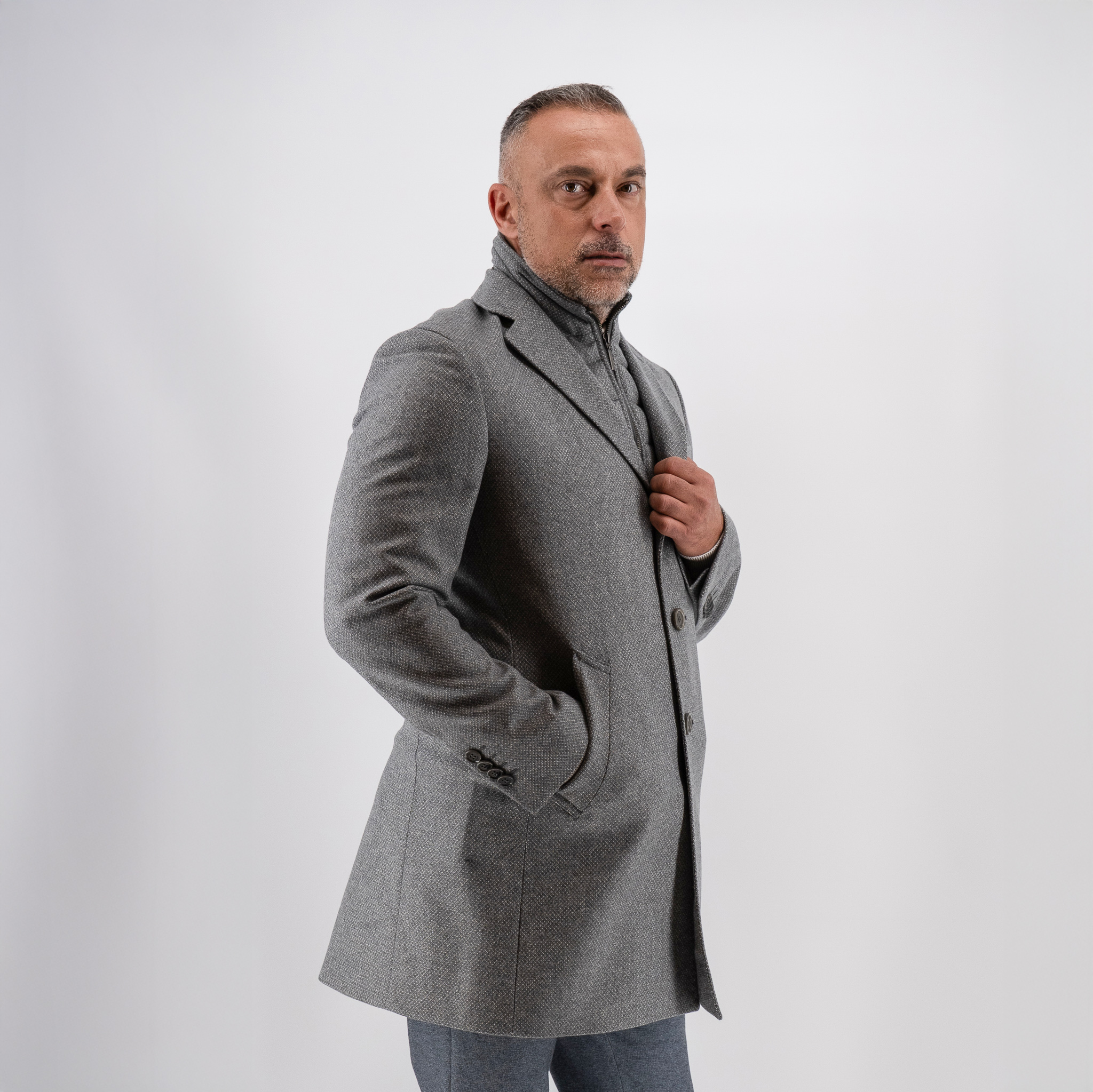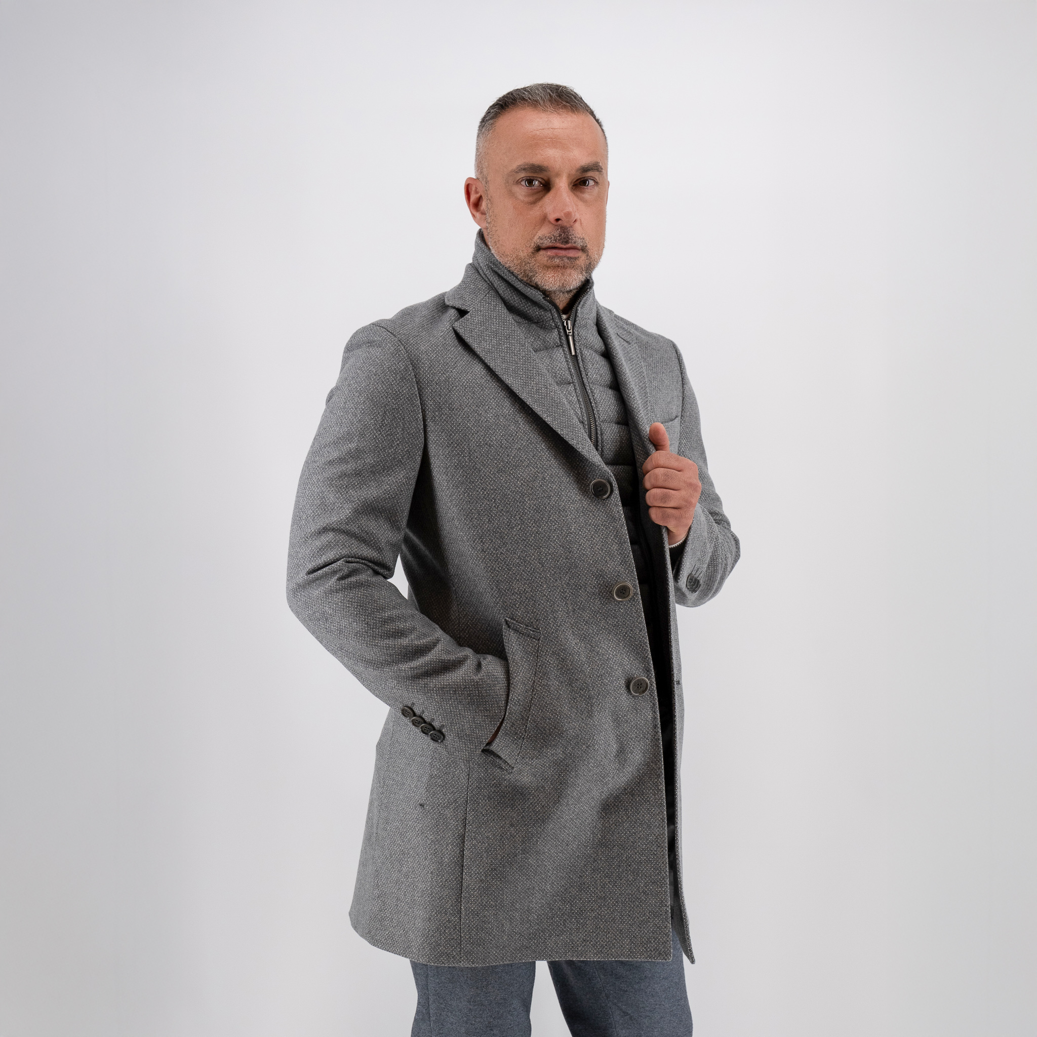 - Ημίπαλτο με αποσπώμενη μόστρα Guy Laroche γκρι αρζάν fit line