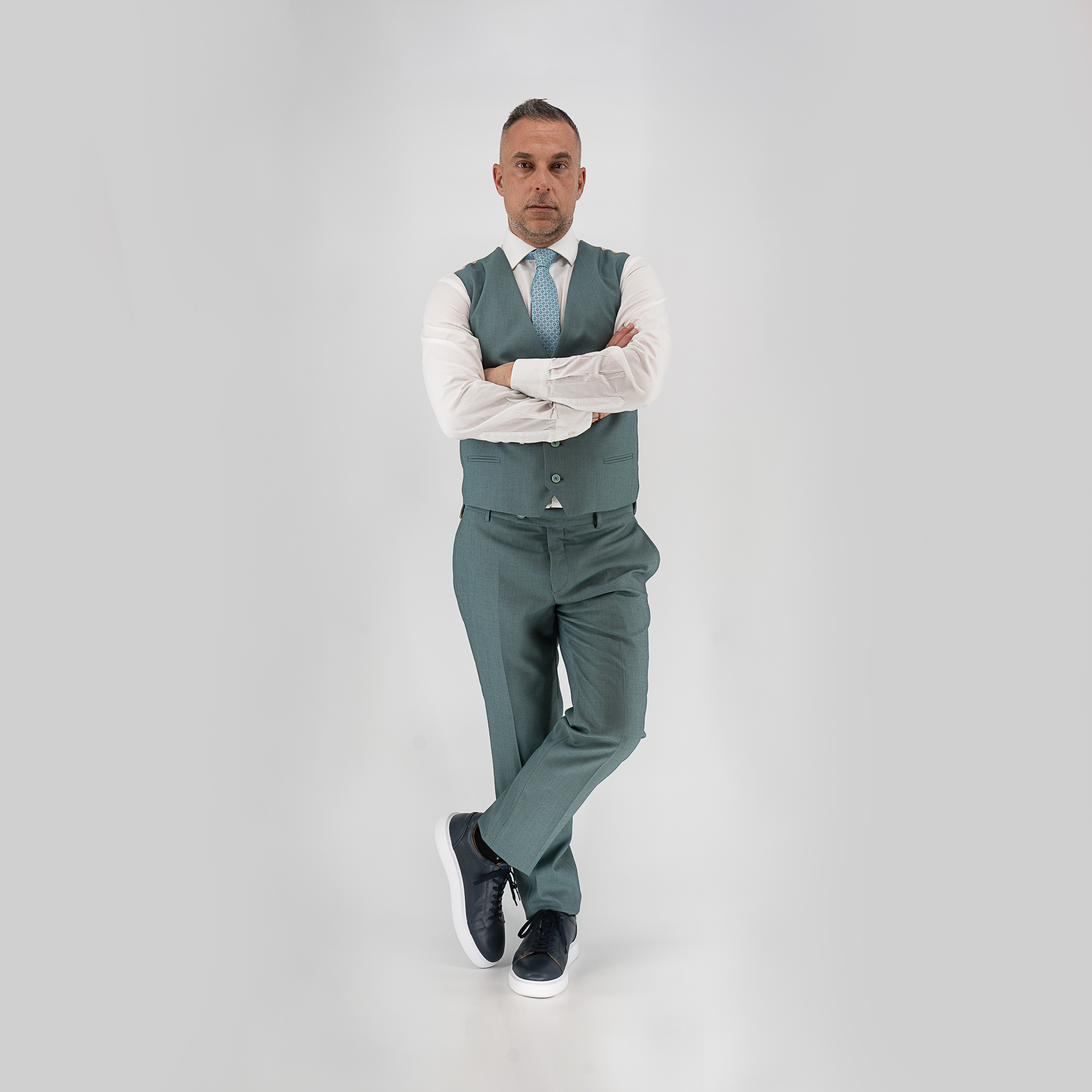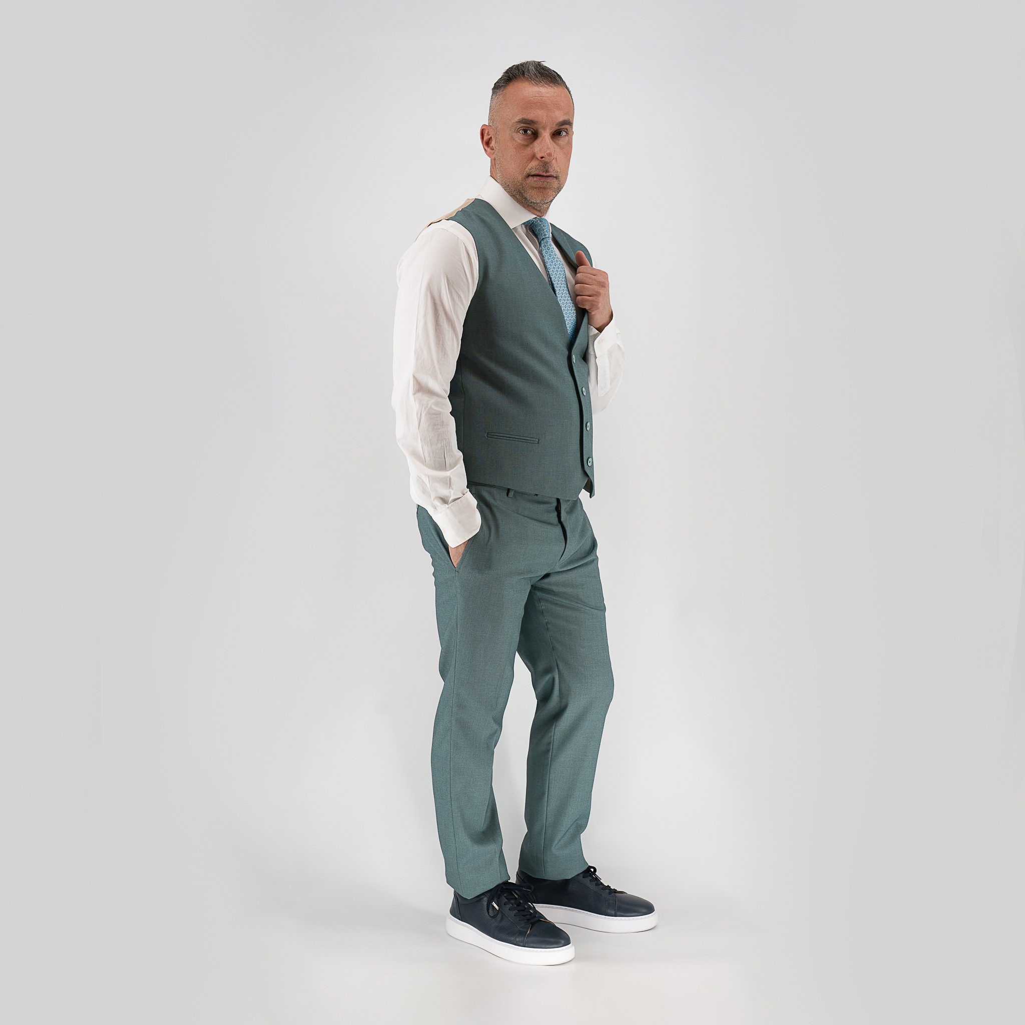 - Κοστούμι με γιλέκο Guy Laroche βεραμάν fit line