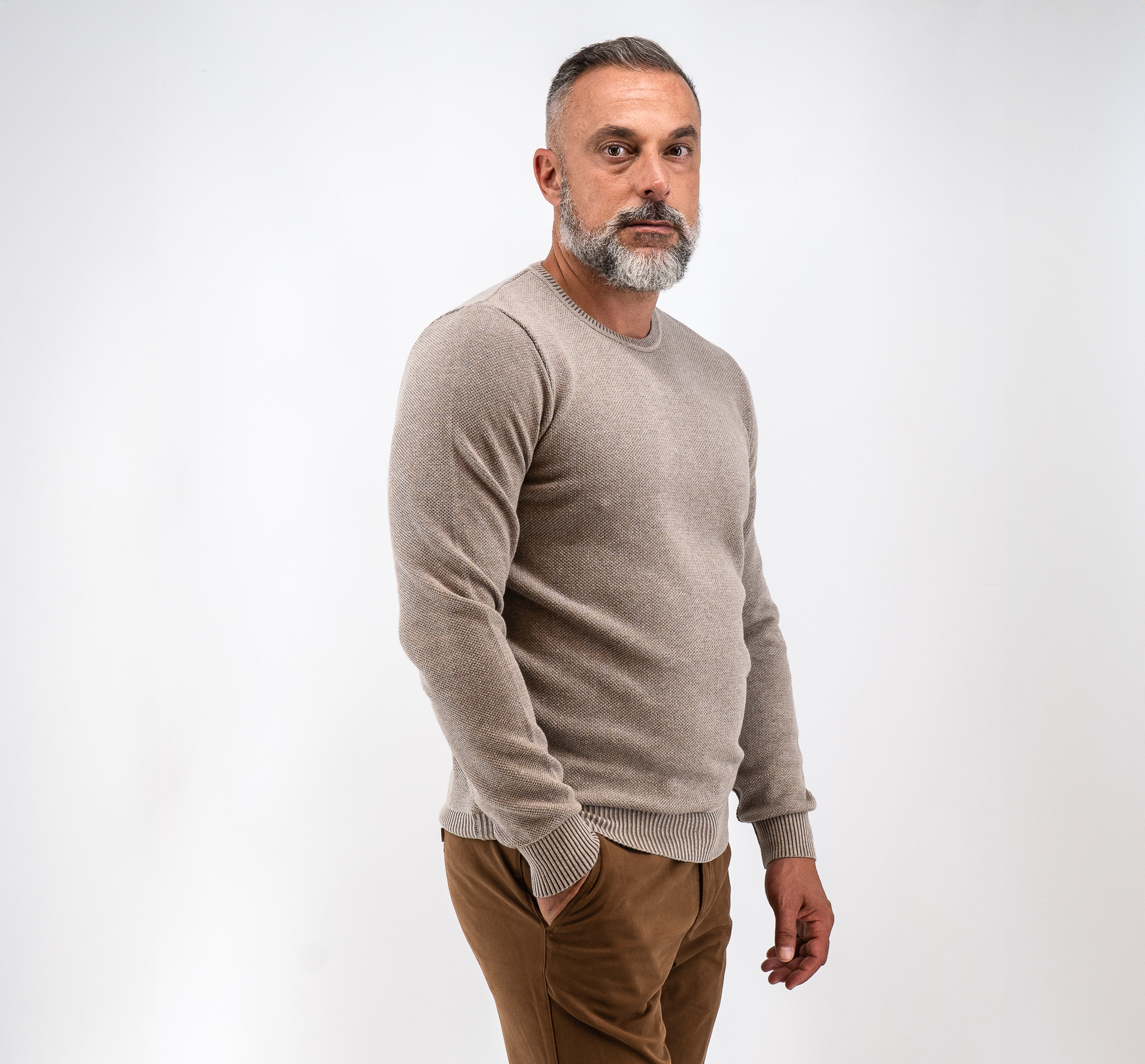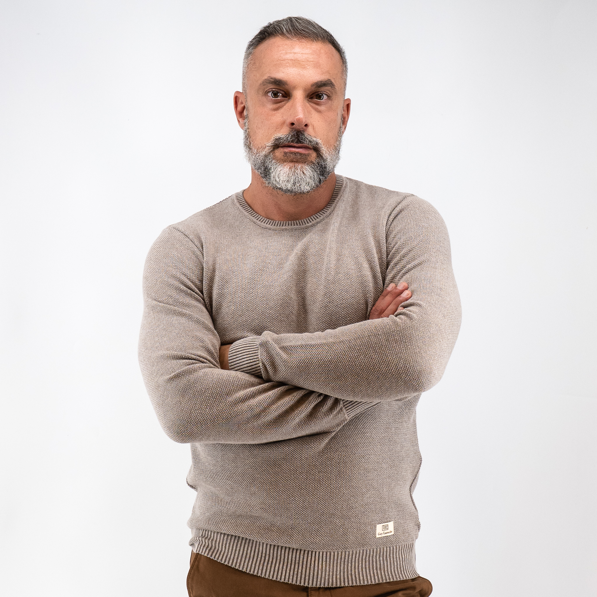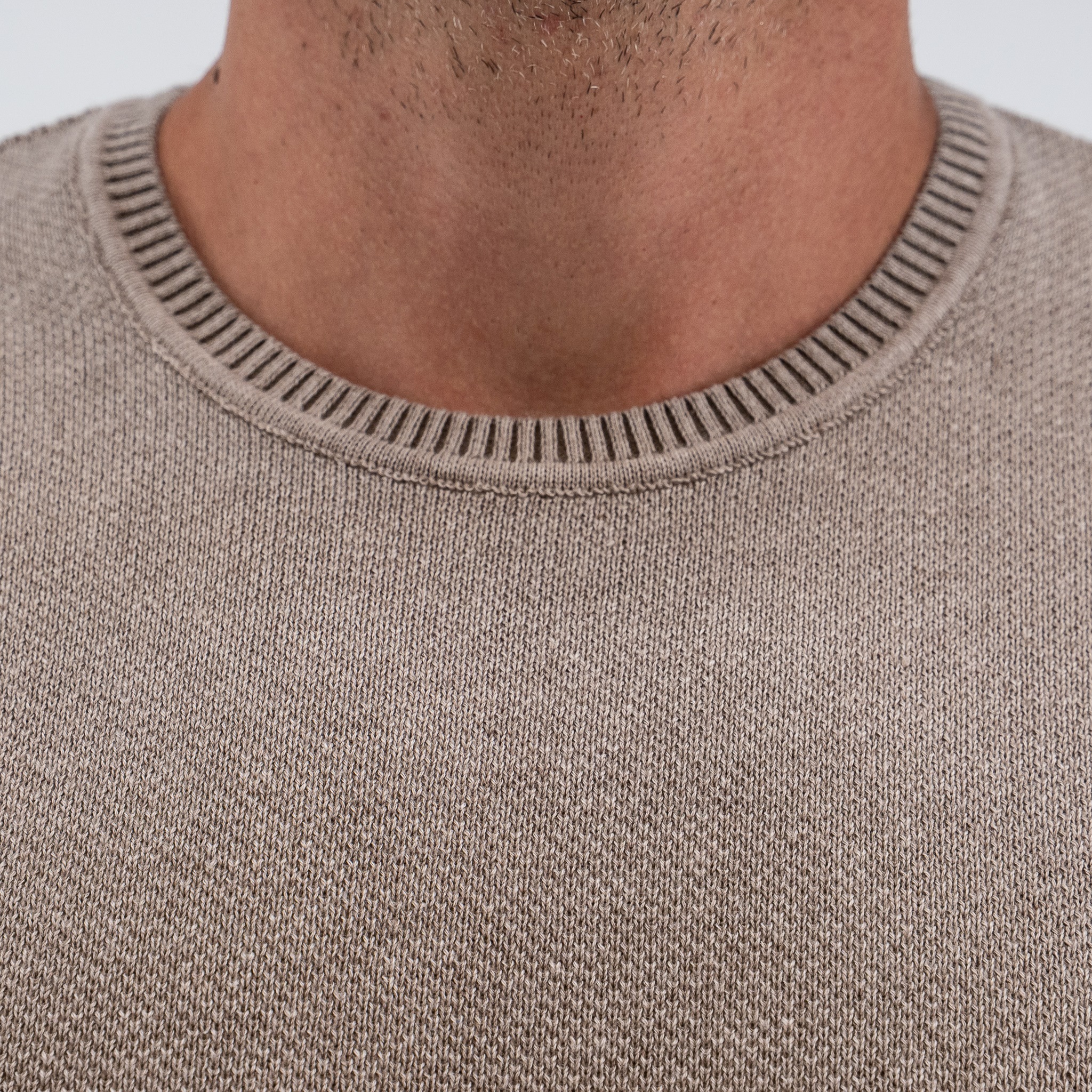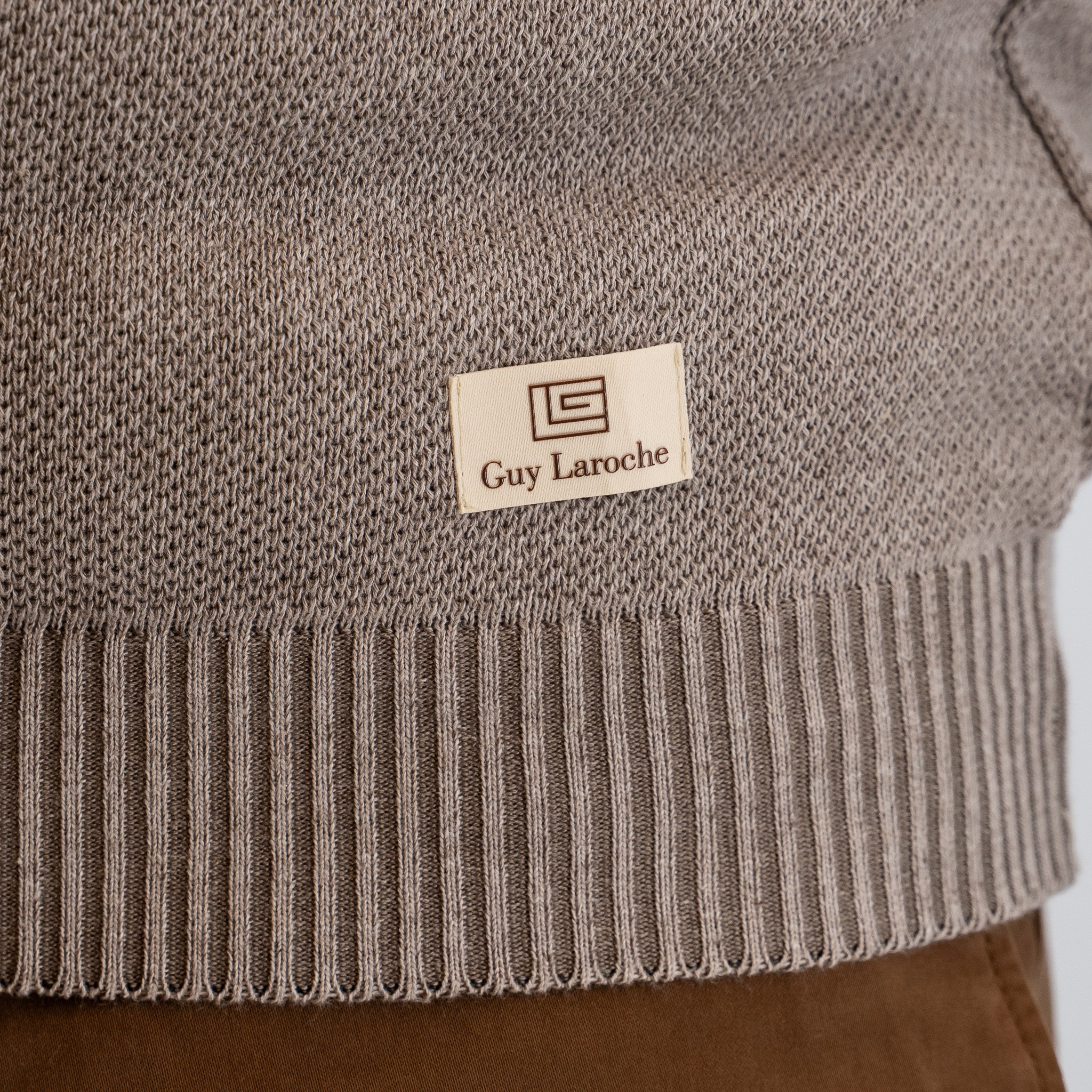 - Πλεκτή λαιμόκοψη Guy Laroche ζακάρ μπεζ regular fit