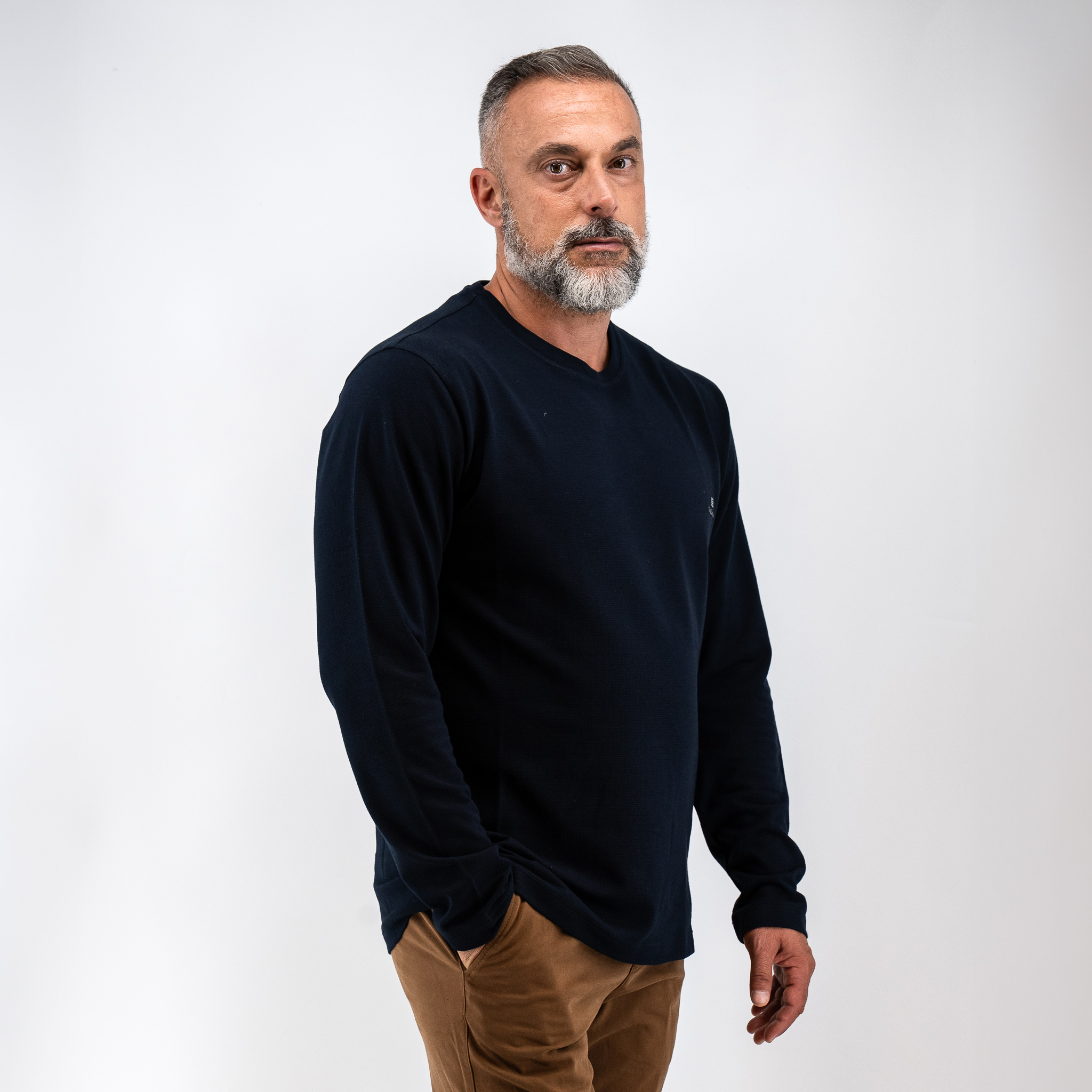 Μπλούζα λαιμόκοψη πικέ Guy Laroche μπλε regular fit GLEW29001_2