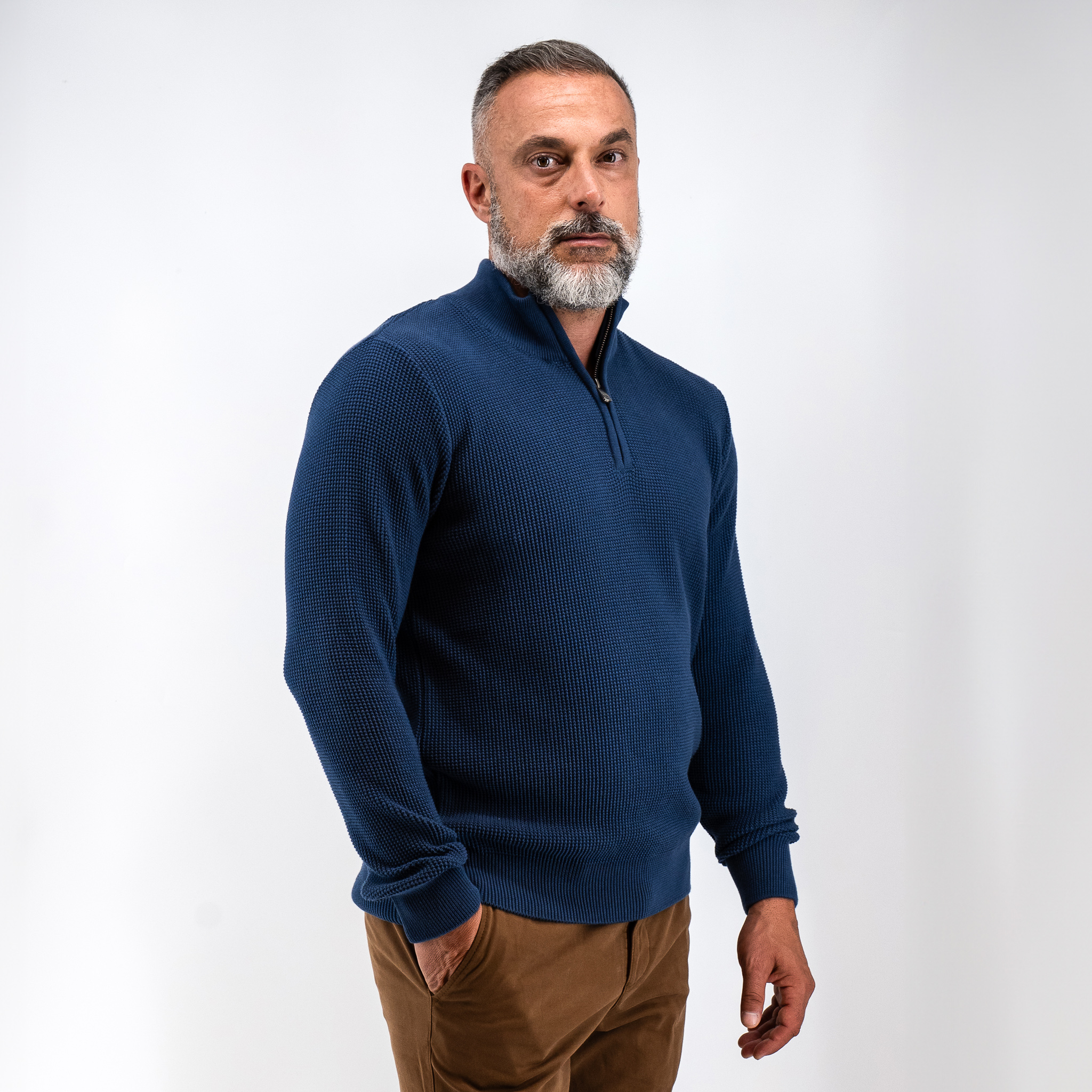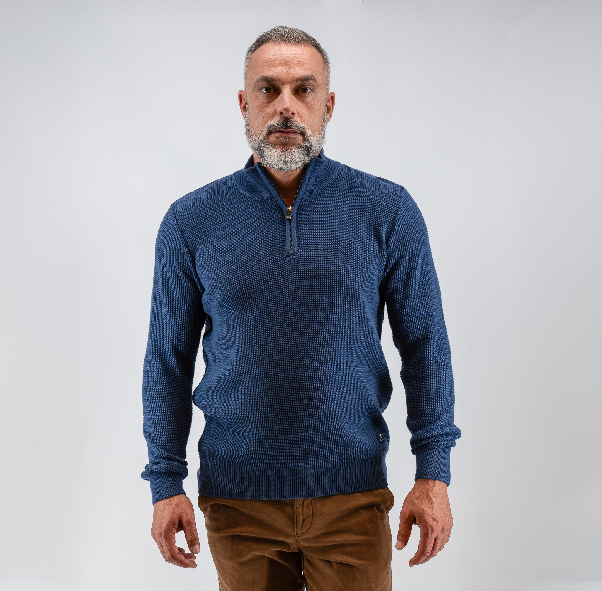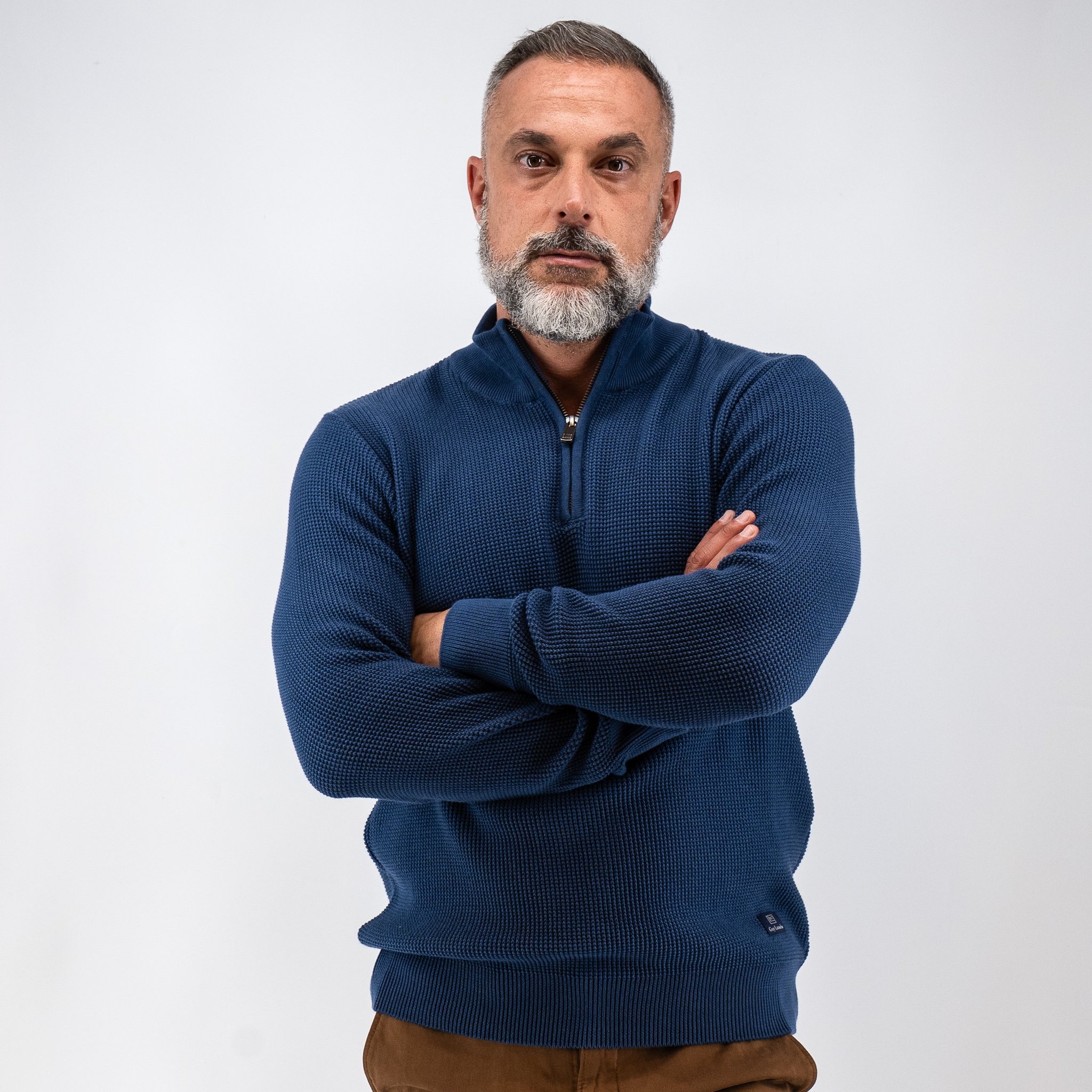 - Πλεκτό βαμβακερό λουπέτο με ζιπ Guy Laroche ραφ regular fit