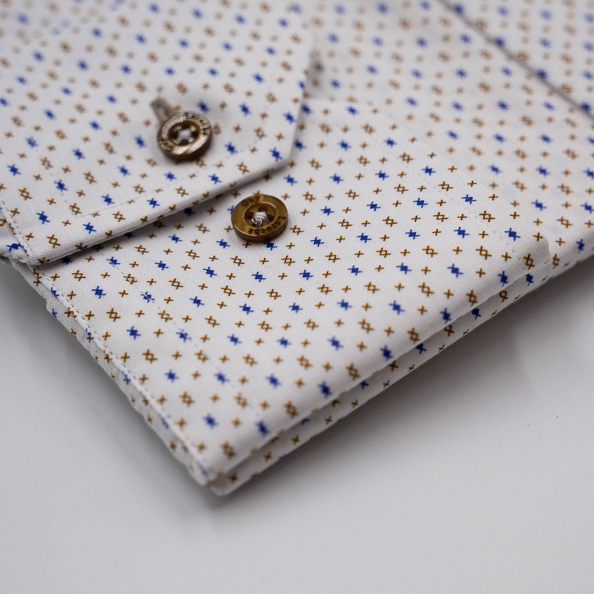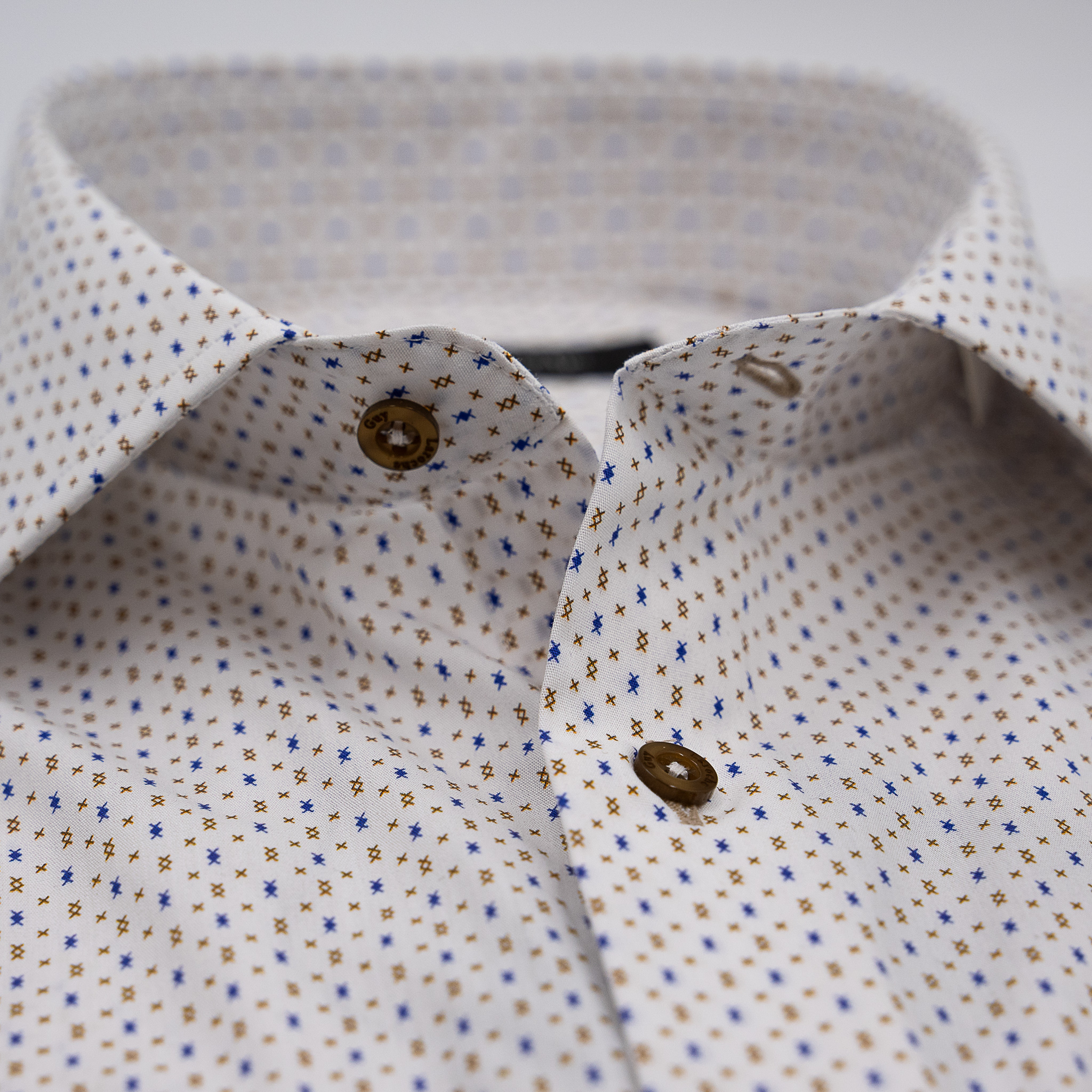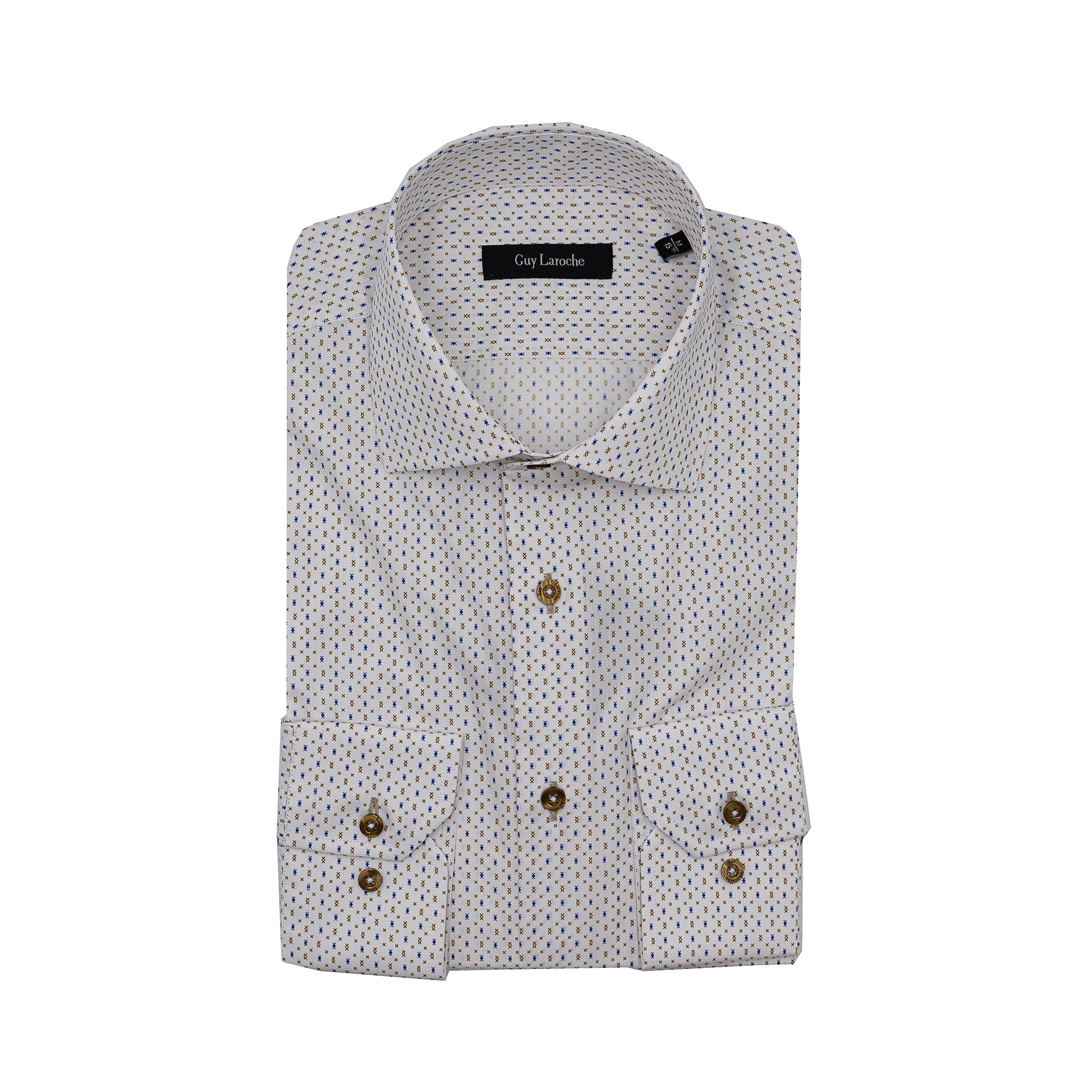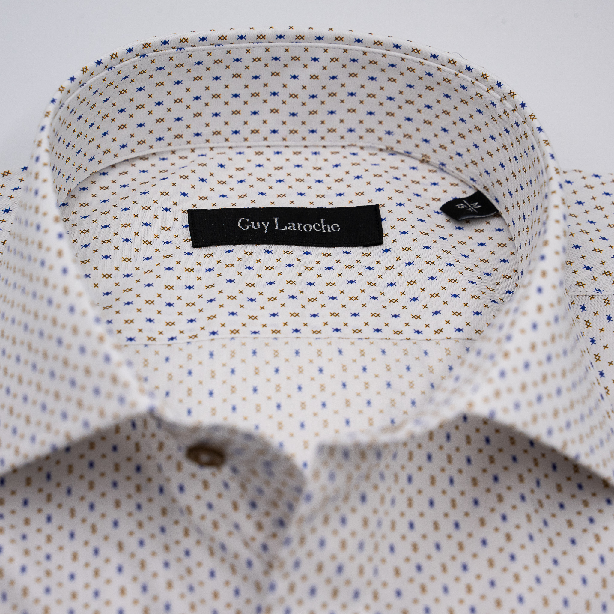 - Πουκάμισο λευκό Guy Laroche με καφέ και μπλε μικροσχέδιο regular fit