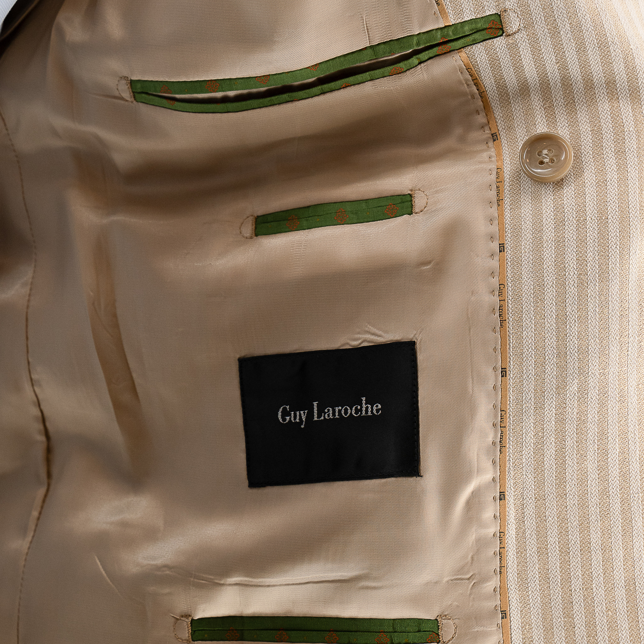 - Σακάκι σταυρωτό ριγέ Guy Laroche μπεζ fit line