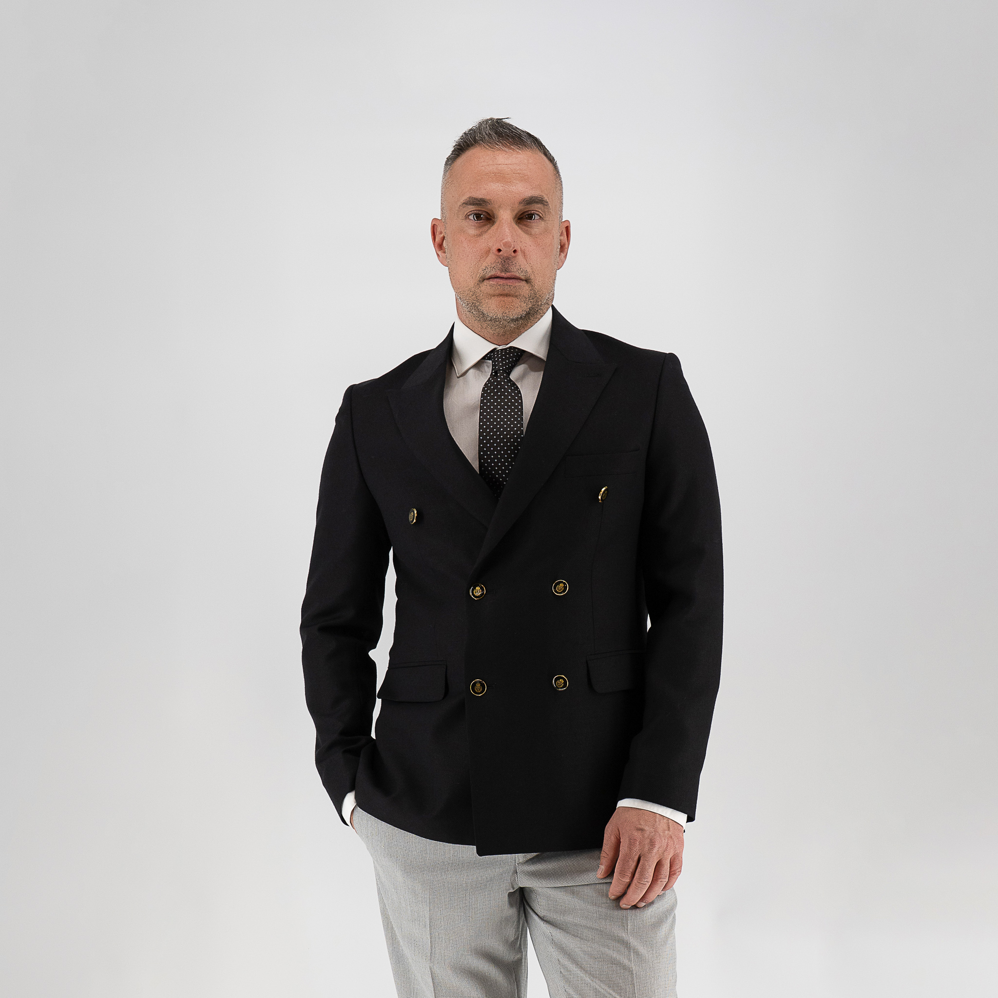 - Σταυρωτό σακάκι με πολυτελή κουμπιά