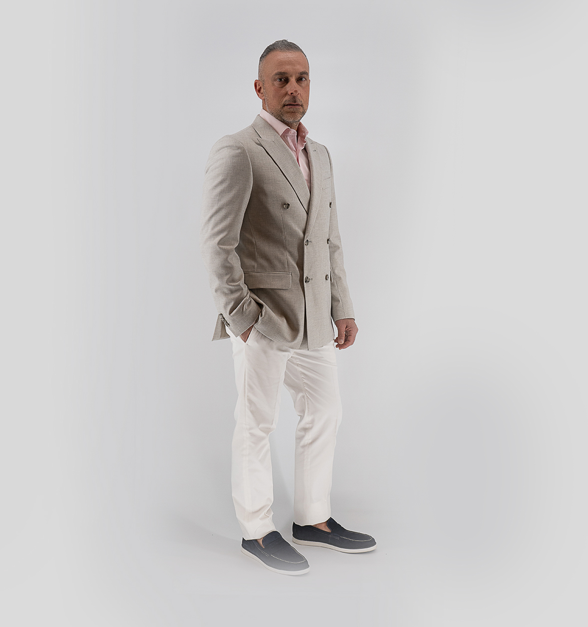 - Σακάκι σταυρωτό Guy Laroche στο χρώμα της άμμου fit line