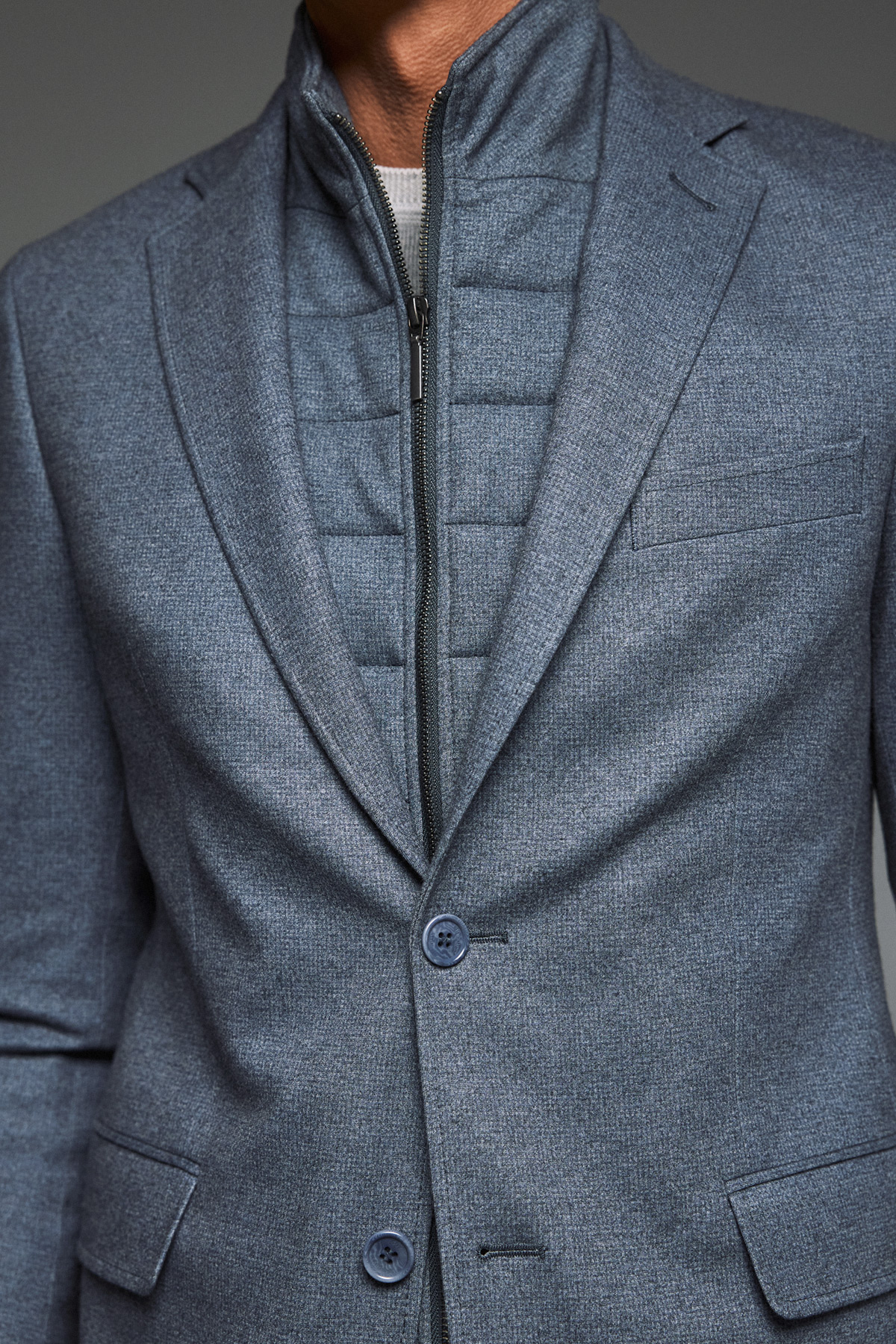 - Αποσπώμενο fake gilet από το ίδιο ύφασμα