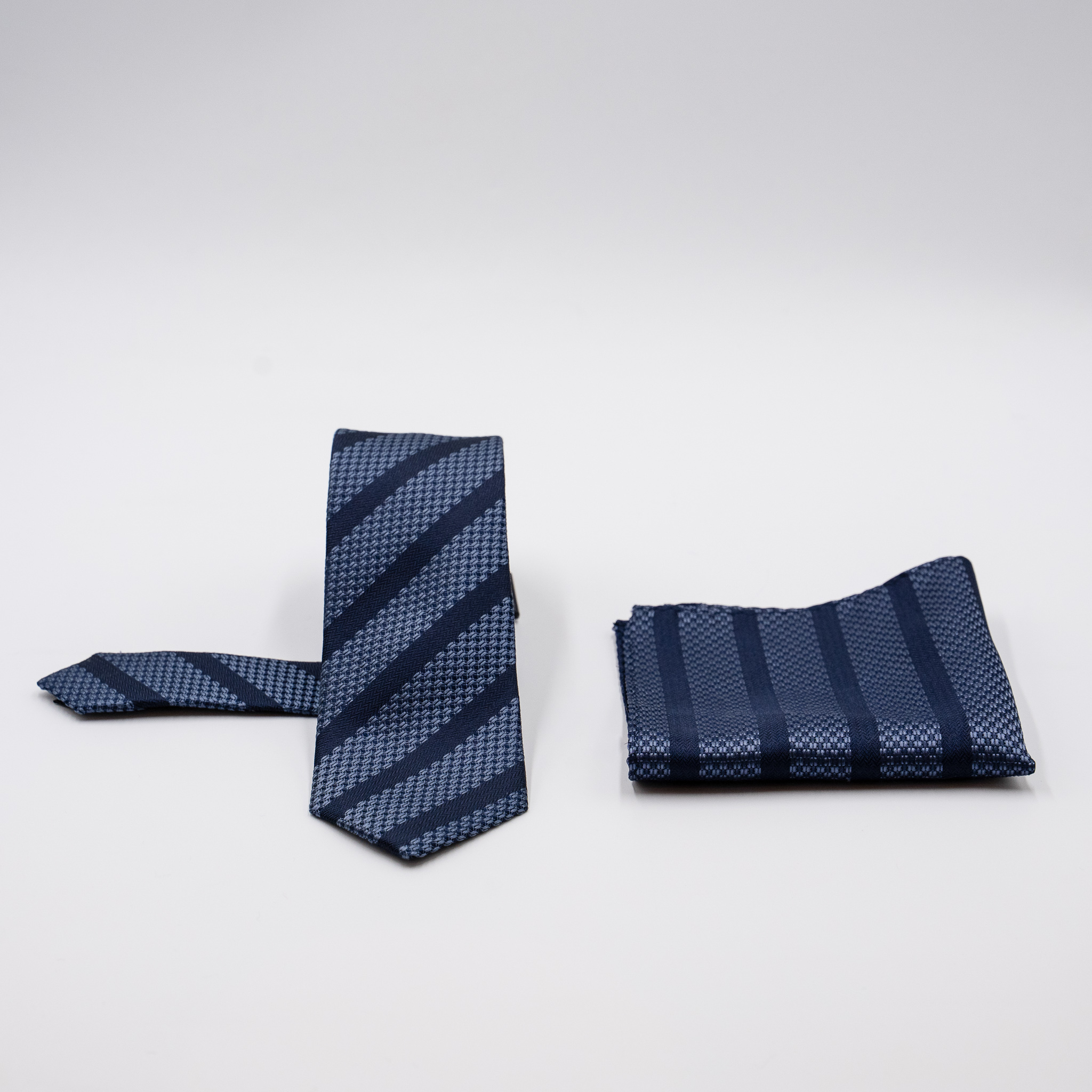 - Σετ γραβάτας με ποσέτ Guy Laroche μπλε ριγέ μεταξωτή